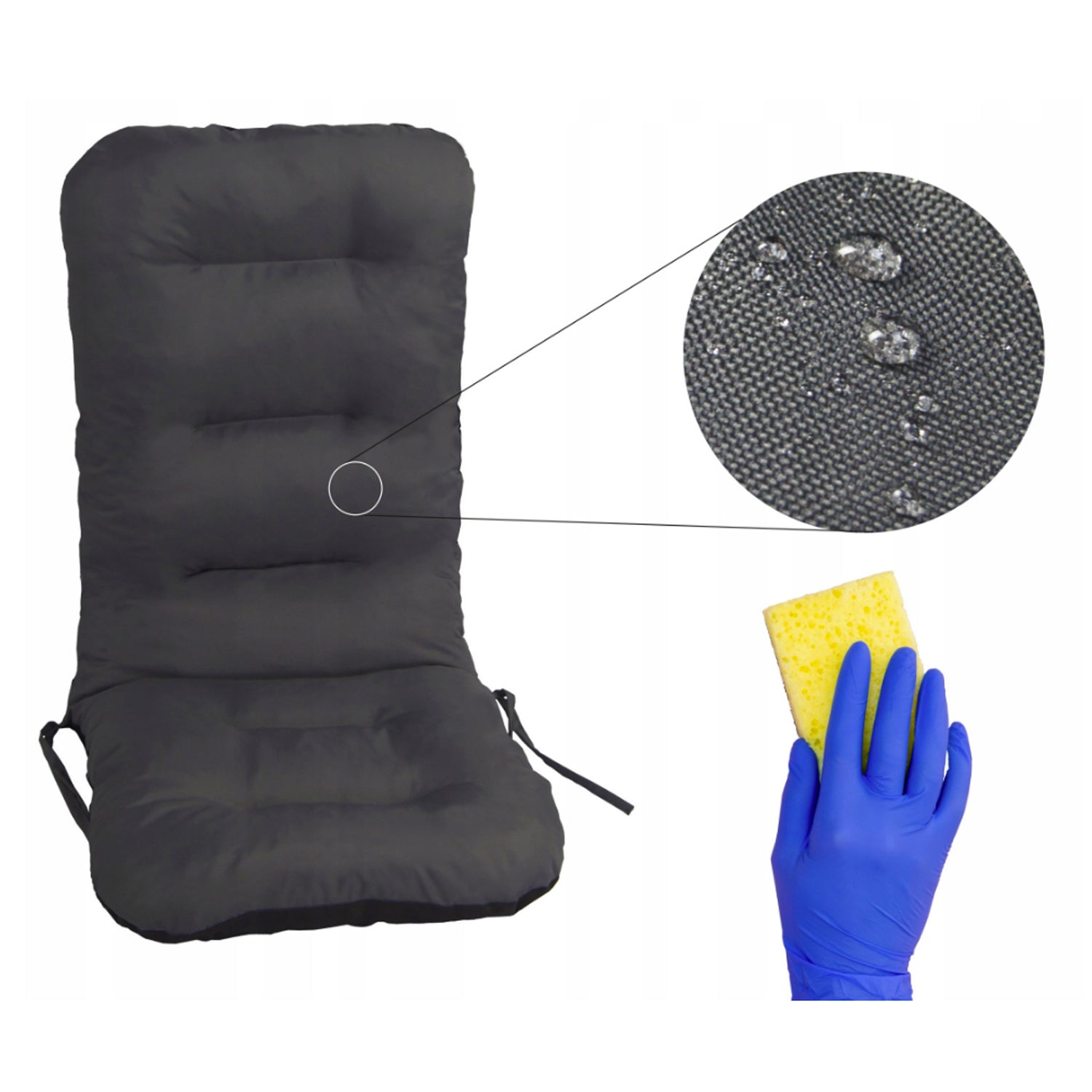 • Einfache Befestigung durch Gummiband an der Rückenlehne und seitliche Bänder