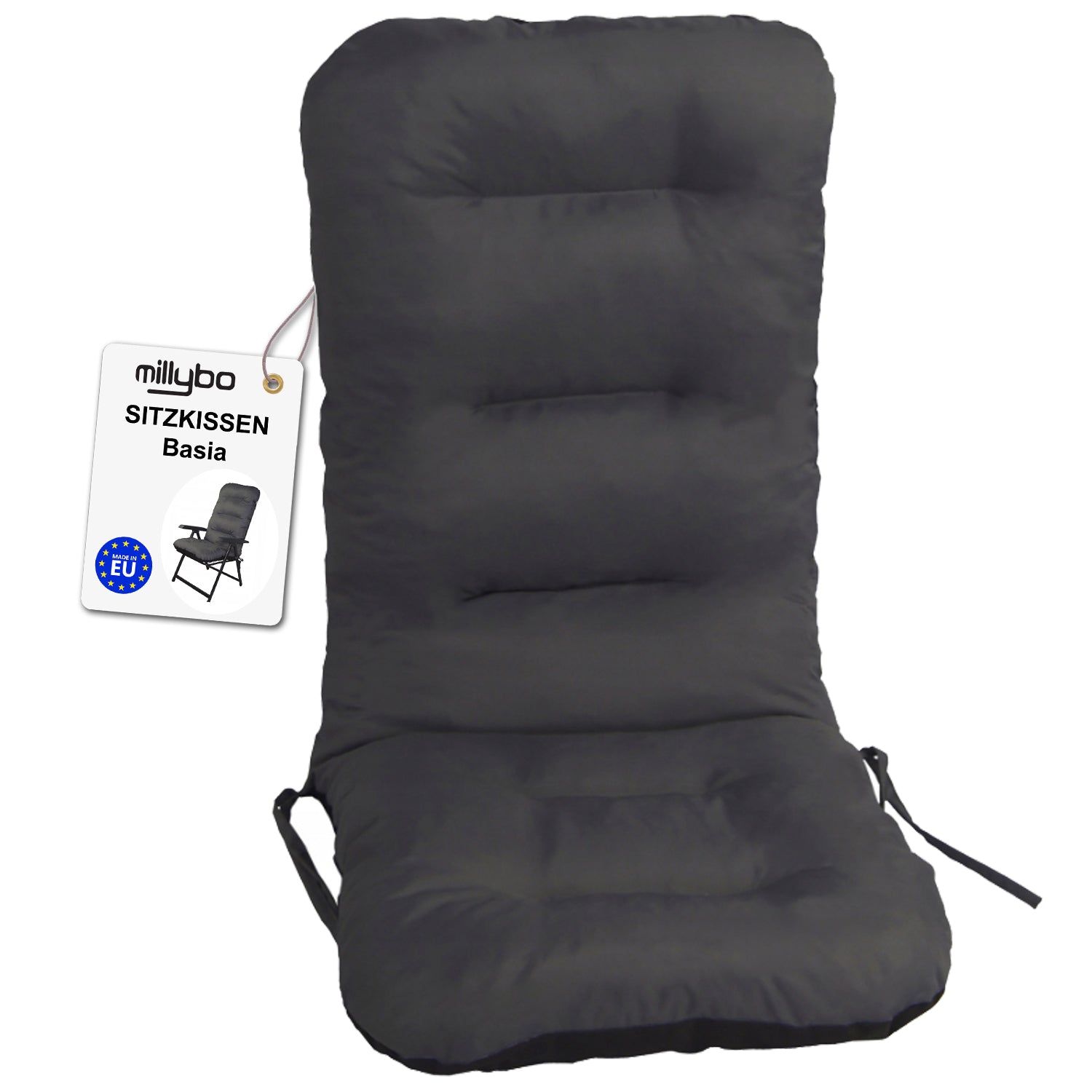 MILLYBO Gartenstuhlauflage – Sitzkissen für Gartenstühle & Balkonmöbel BASIA - Graphit